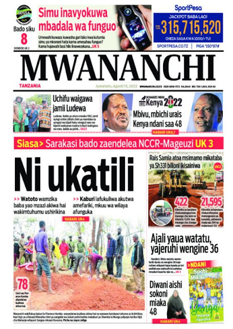 HABARI KUBWA KWENYE MAGAZETI YA LEO JUMATATU AGOSTI 15,2022